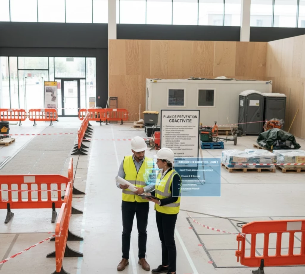 Un chantier magasin se joue souvent dans un environnement sensible (copropriété, centre commercial, voisinage). L’organisation (protections, cheminements, stockage, propreté, horaires bruyants) conditionne la continuité du travail. En cas de coactivité, la coordination des mesures de prévention doit être formalisée selon le contexte (coordination SPS ou plan de prévention). PréventionBTP (obligations en coactivité).